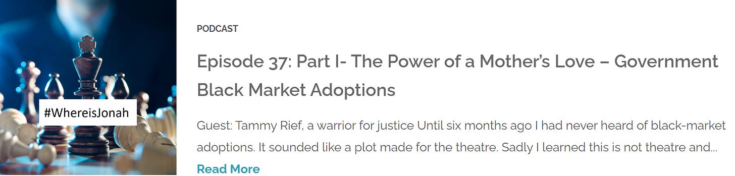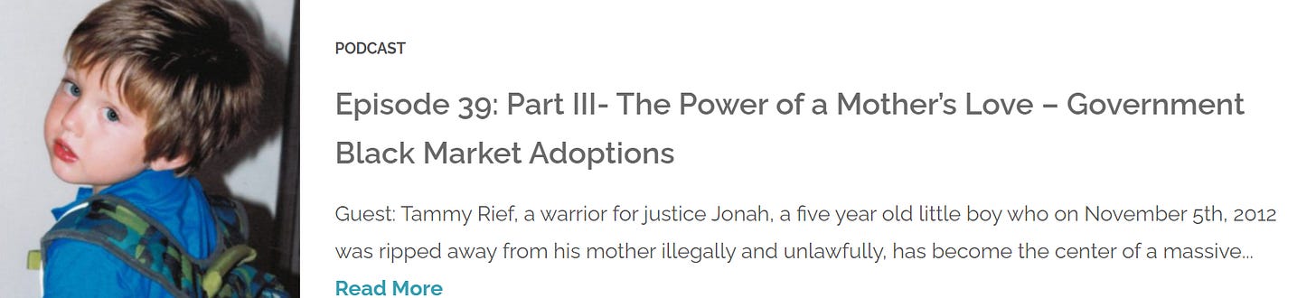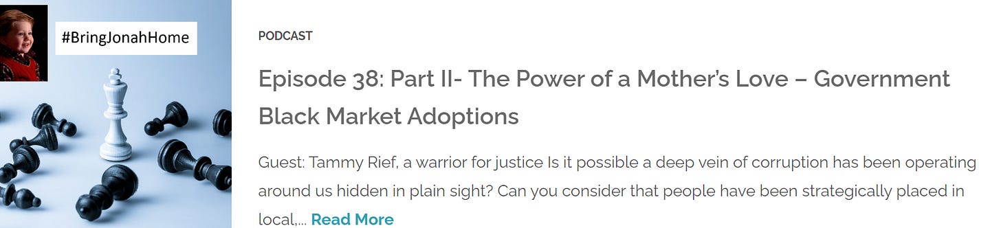 Tammy Rief is in a fight like no other. The enemy long ago bankrupted her in lawfare while causing economic hemorrhaging to also exhaust the financial resources of her embattled and supporting parents, Jonah’s grandparents.